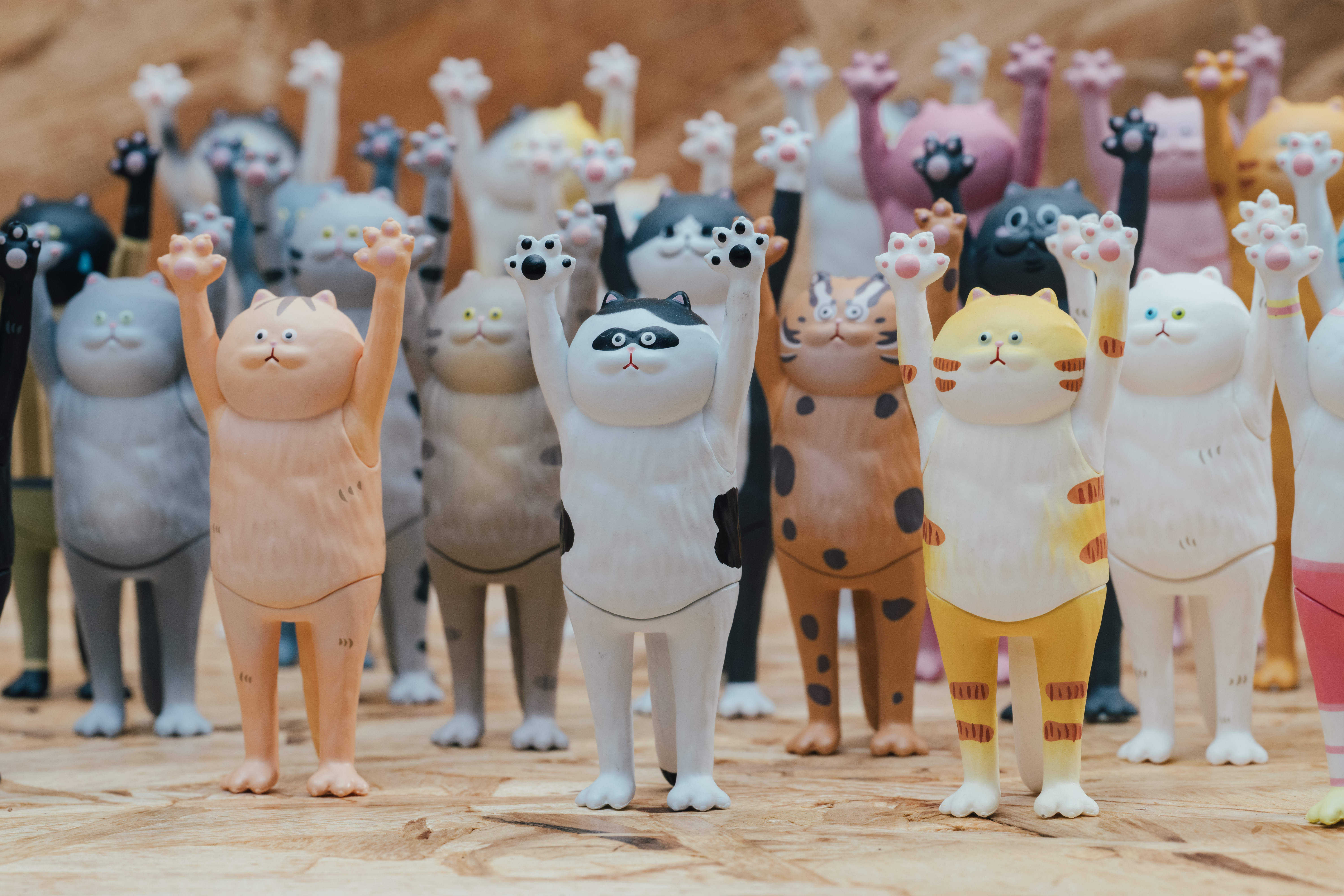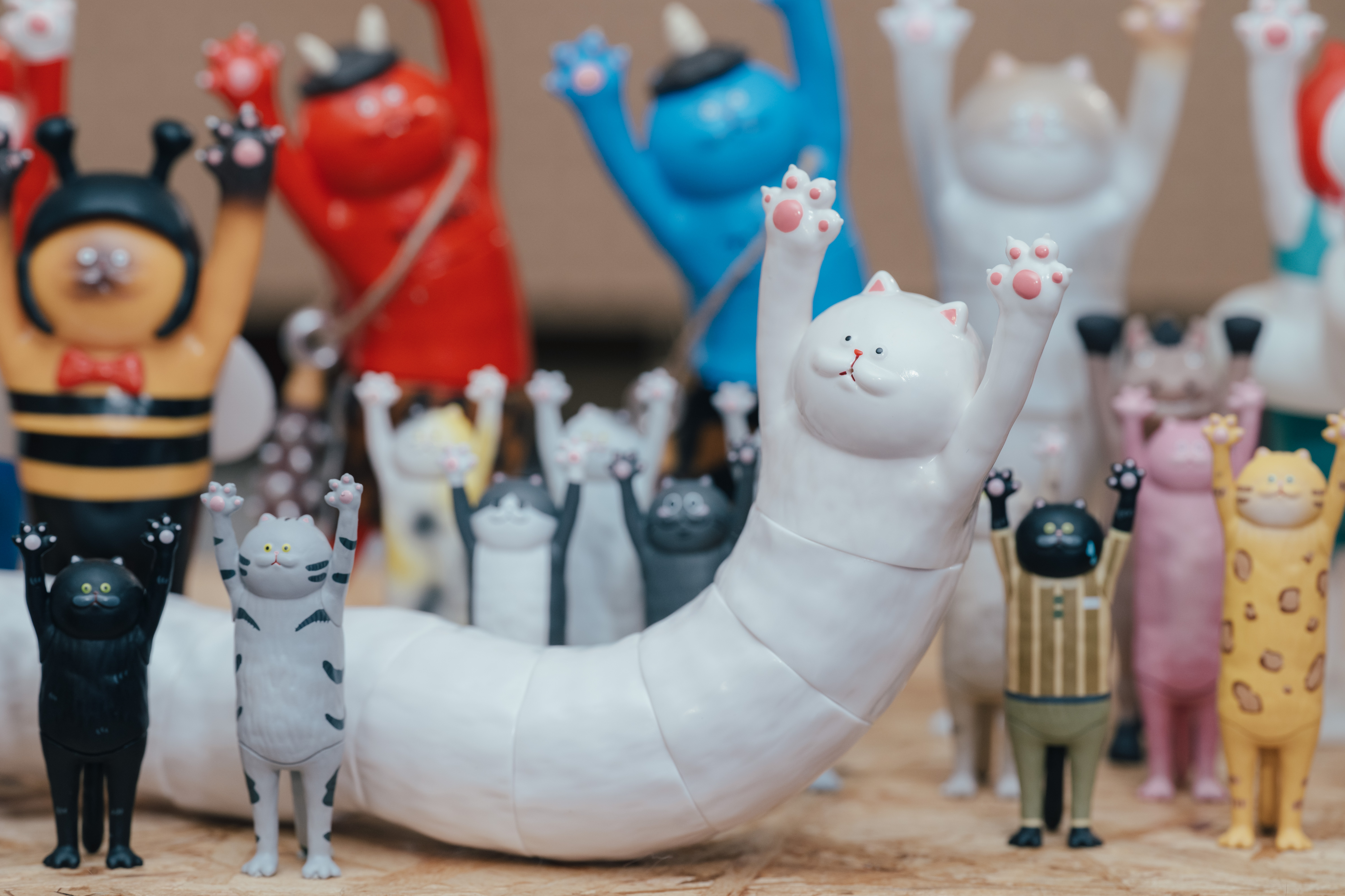 多數地球上的喵星人總是一副「百無聊賴」的傲嬌面色,要牠們跟你討抱?堪比「反派轉正」,根本是不可能的任務!這群討抱的喵咪公仔初問世就擁有32款的強大編制,給了Dylan前所未有的挑戰。「當初跟進行授權合作的『路遙圓創』討論,打算把所有能想到的貓咪全部做出來,單純想在推出『貓的抱抱』的那一刻,徹底『統治』所有貓奴的心!」對他來說,這並非追隨寵物熱潮或有貓就賣的商業考量,而是發自內心對於貓咪的狂愛!