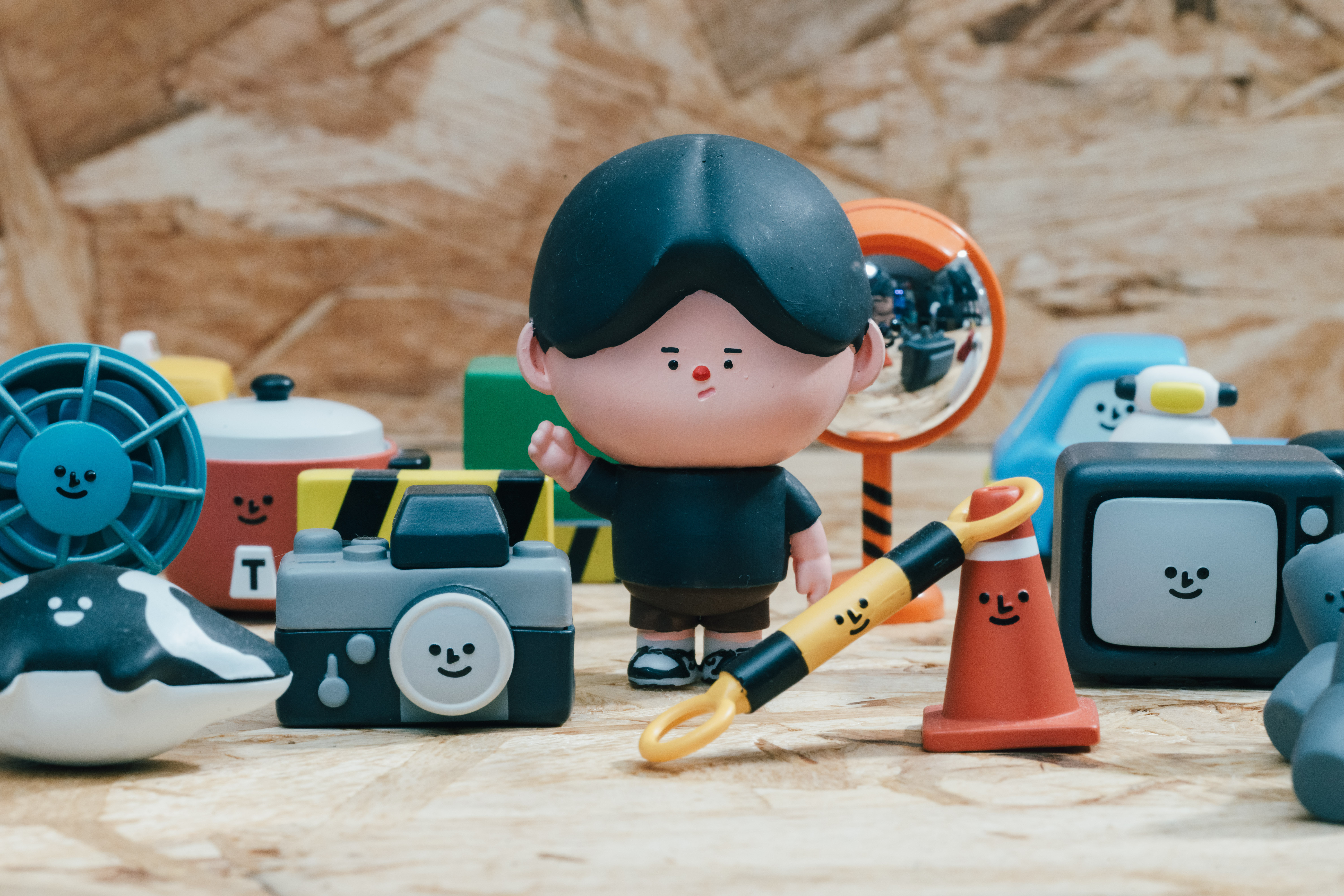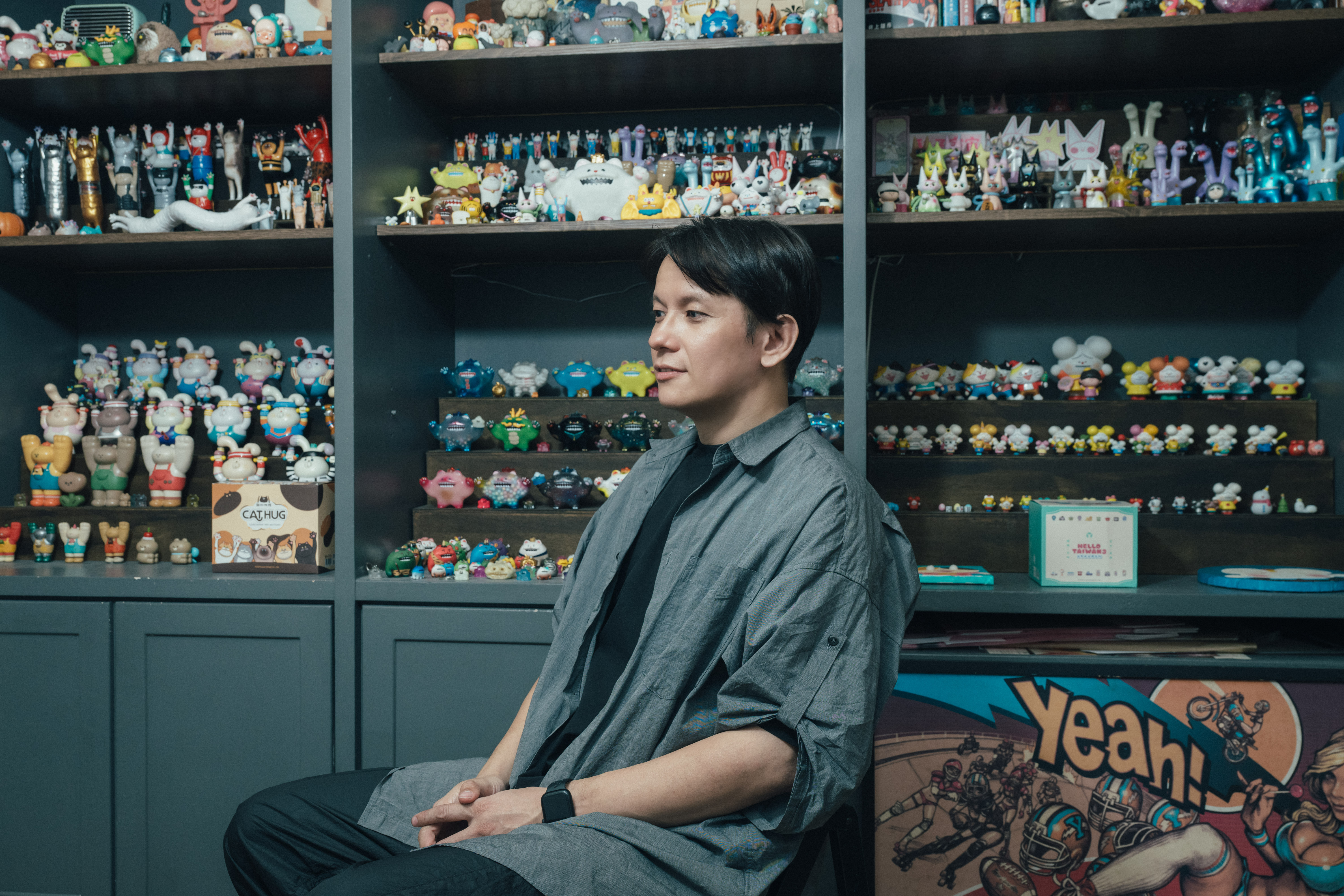 他觀察到,「日本有不少歷史悠久的動漫IP,像是無敵鐵金剛、鋼彈、哥吉拉、七龍珠、超人力霸王,都是自己兒時著迷的卡通角色,現在他們的周邊商品又再次流行起來,推陳出新更多、更精緻的軟膠玩具、模型或盒玩。」這讓他們的受眾橫跨不同年齡層,甚至讓小朋友與家長有了共通的語言,增加更多互動與樂趣。以自身為例,最近常陪女兒看《芝麻街》卡通節目,發現簡單、純真的設計反而最耐看,給了他新的感動——希望自己的作品也能像這些經典角色一樣,不必很複雜,卻能使人感受到最直接、最純粹的歡樂。