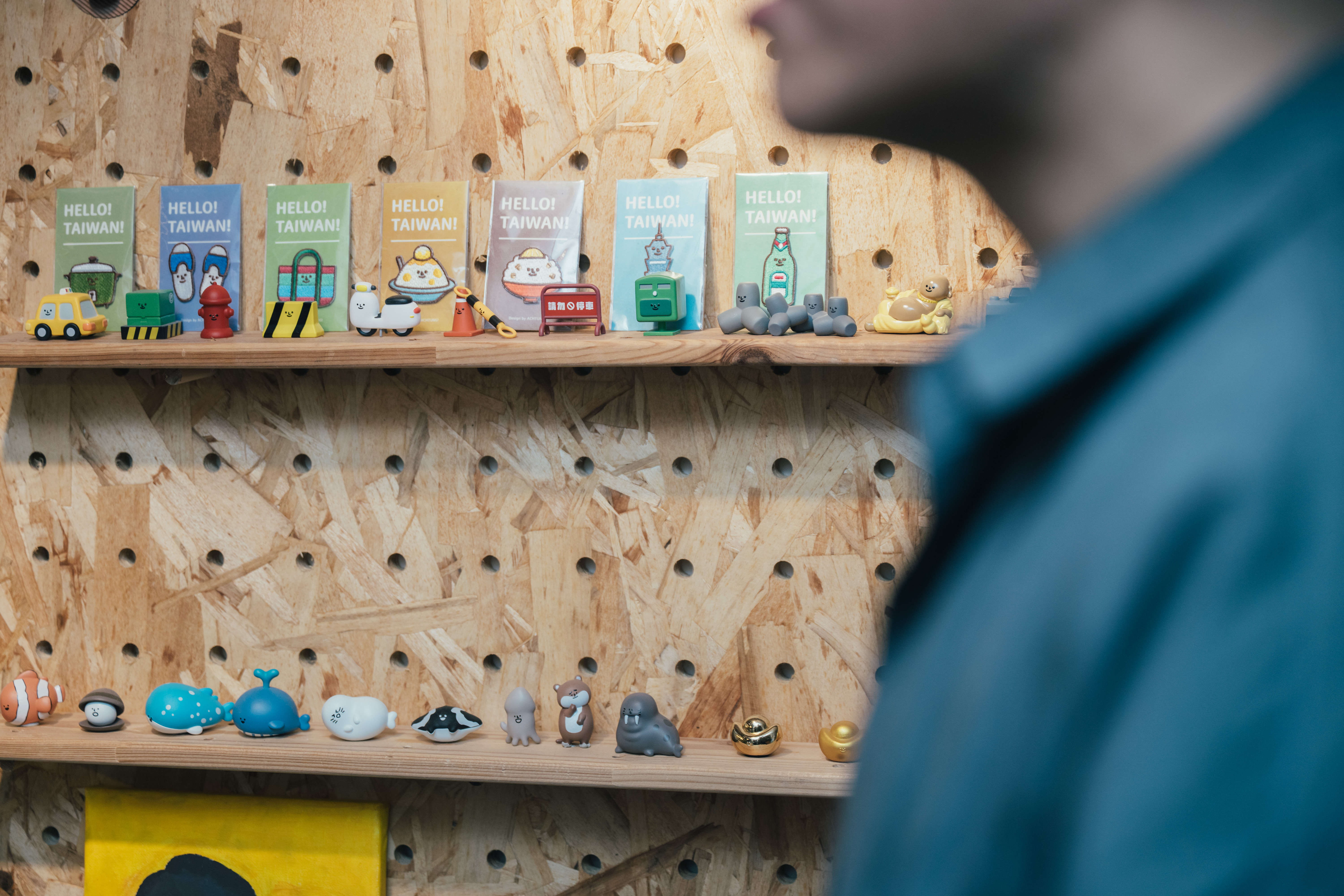 除了「貓的抱抱」從設計師玩具開發至「盒玩」和「吊飾娃娃」,自小眾的玩具圈走入普羅大眾市場;Dylan原創的「Hello Taiwan」系列盒玩,用極簡笑臉搭配台灣經典元素,成功引起觀光客與台灣人的共鳴!起點是以台灣海島為靈感的海洋動物系列,隨後轉向台灣日常文化,推出不同面向的主題:從日本觀光客眼中的城市奇觀——摩托車與黃色計程車,到台灣人偏愛的台味懷舊場景,如阿嬤家的磨石子浴缸、老理髮廳的三色旋轉燈等,通通納入盒玩設計的版圖之中;日前才推出的第五彈「神明系列」,則幽默地將月老、金雞母、媽祖等民俗信仰要角,轉化為精緻的玩具公仔,將民間藝術和現代設計感,融合得恰到好處。