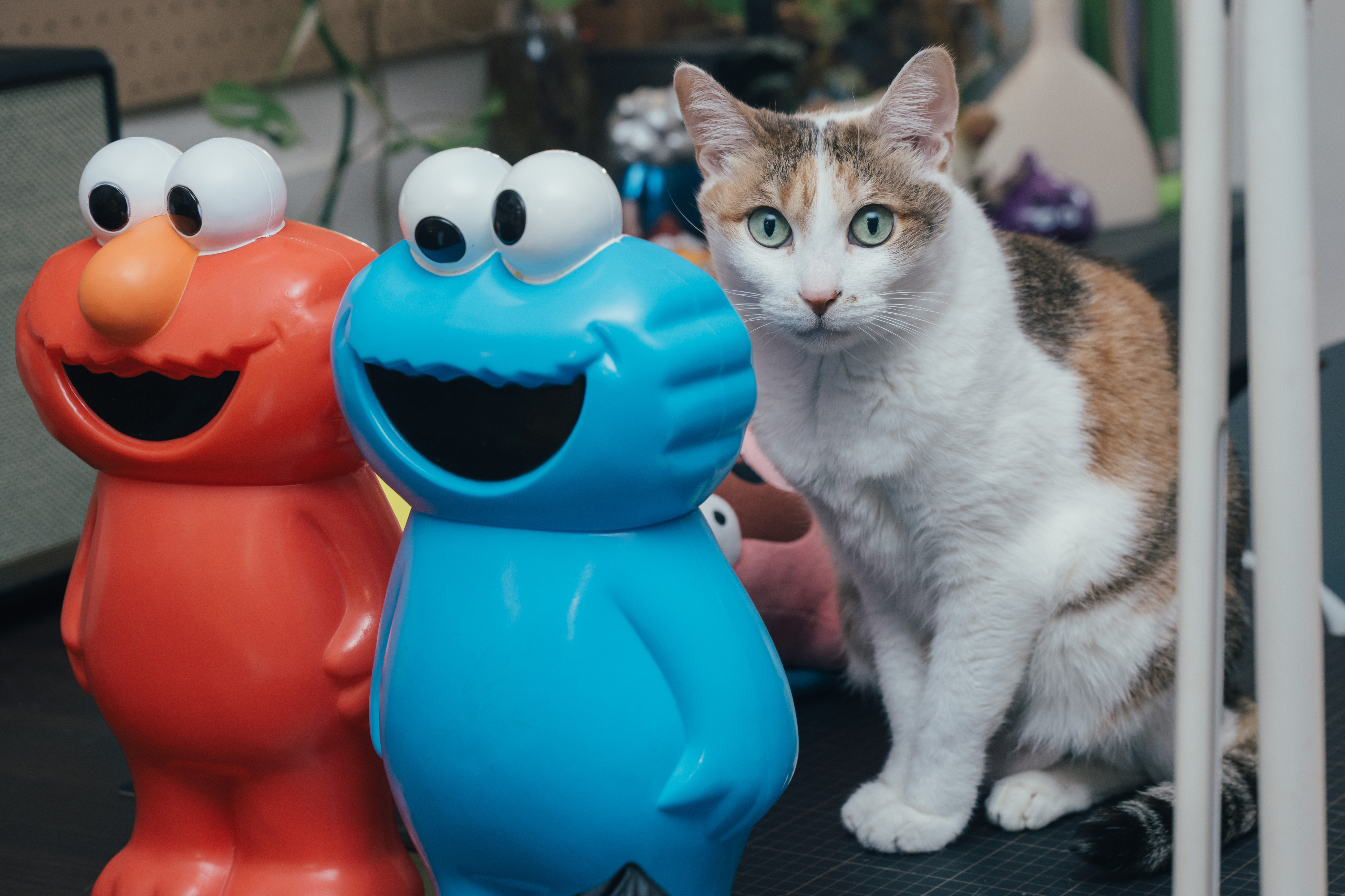 圖說:傍晚拍攝時邀請「貓的抱抱」公仔家族入鏡,不同尺寸、不同材質,還有不同造型的貓咪們守秩序地排排站好,宛如一個貓的抱抱樂園!
