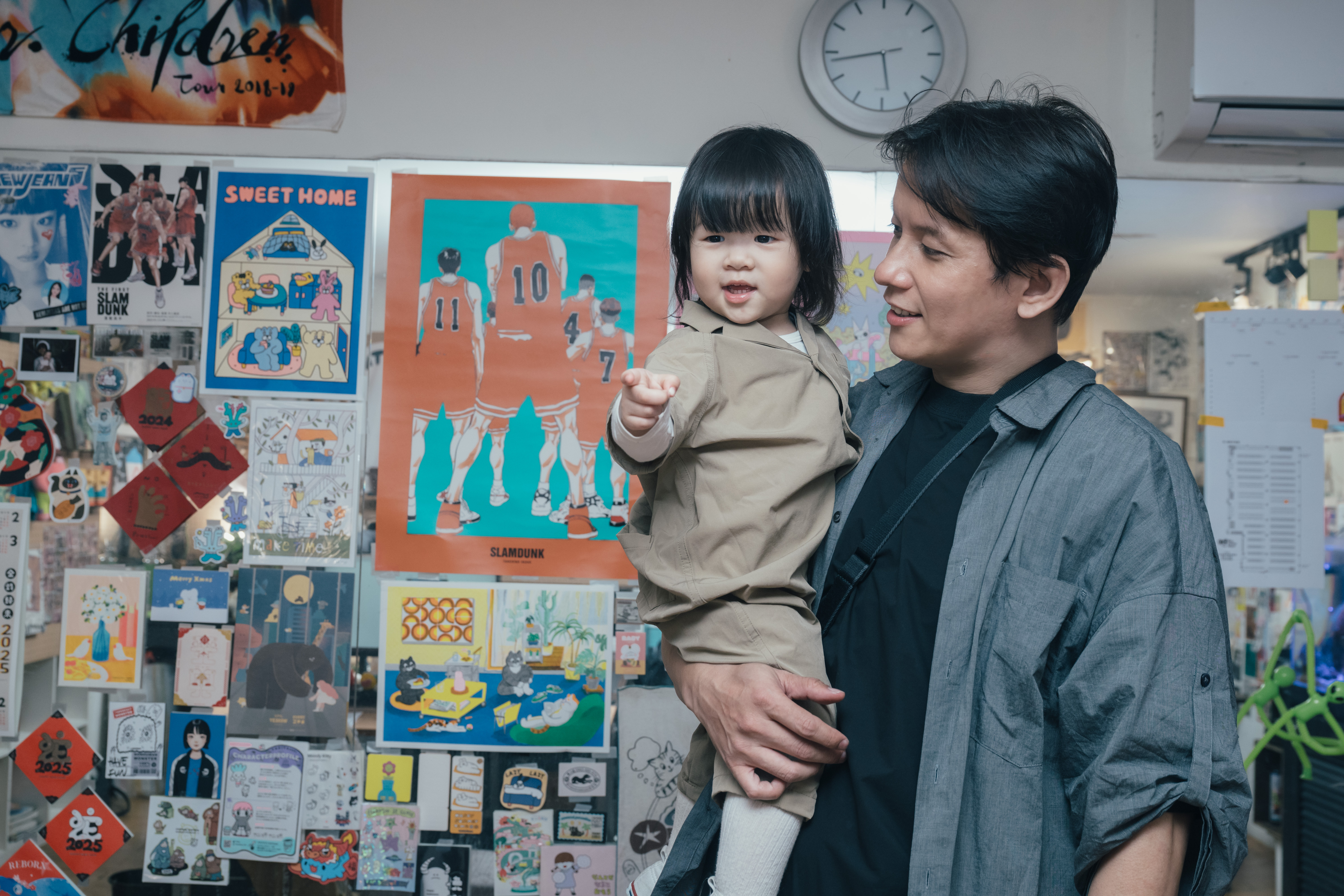 圖說:採訪結束前,Dylan把女兒接來工作室,原本講起話來酷酷的他,一旦跟女兒在一起,整個人像是被瞬間融化,臉上堆滿了笑容。
